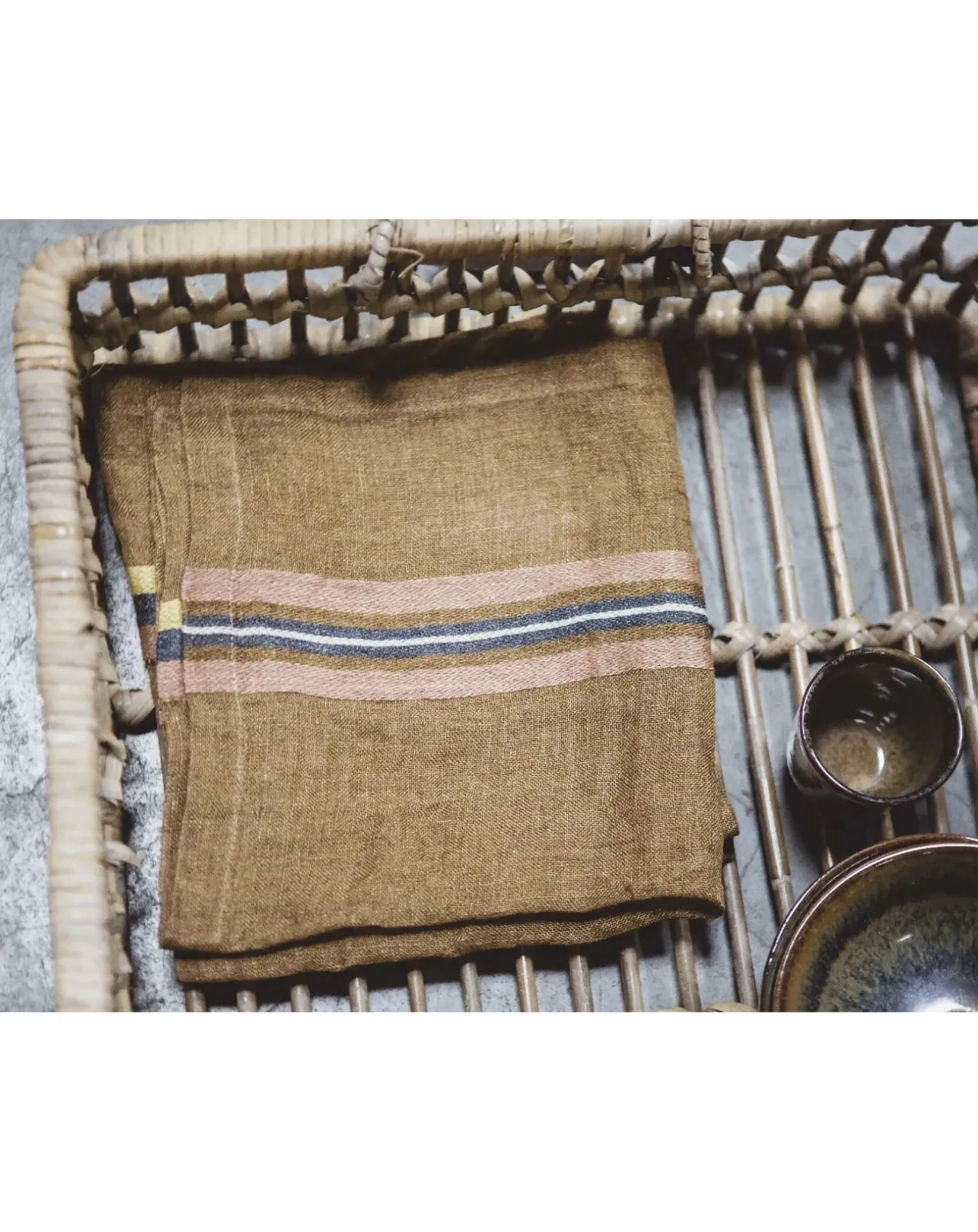 Grâce à ses rayures, cette serviette en lin habillera avec style votre table.