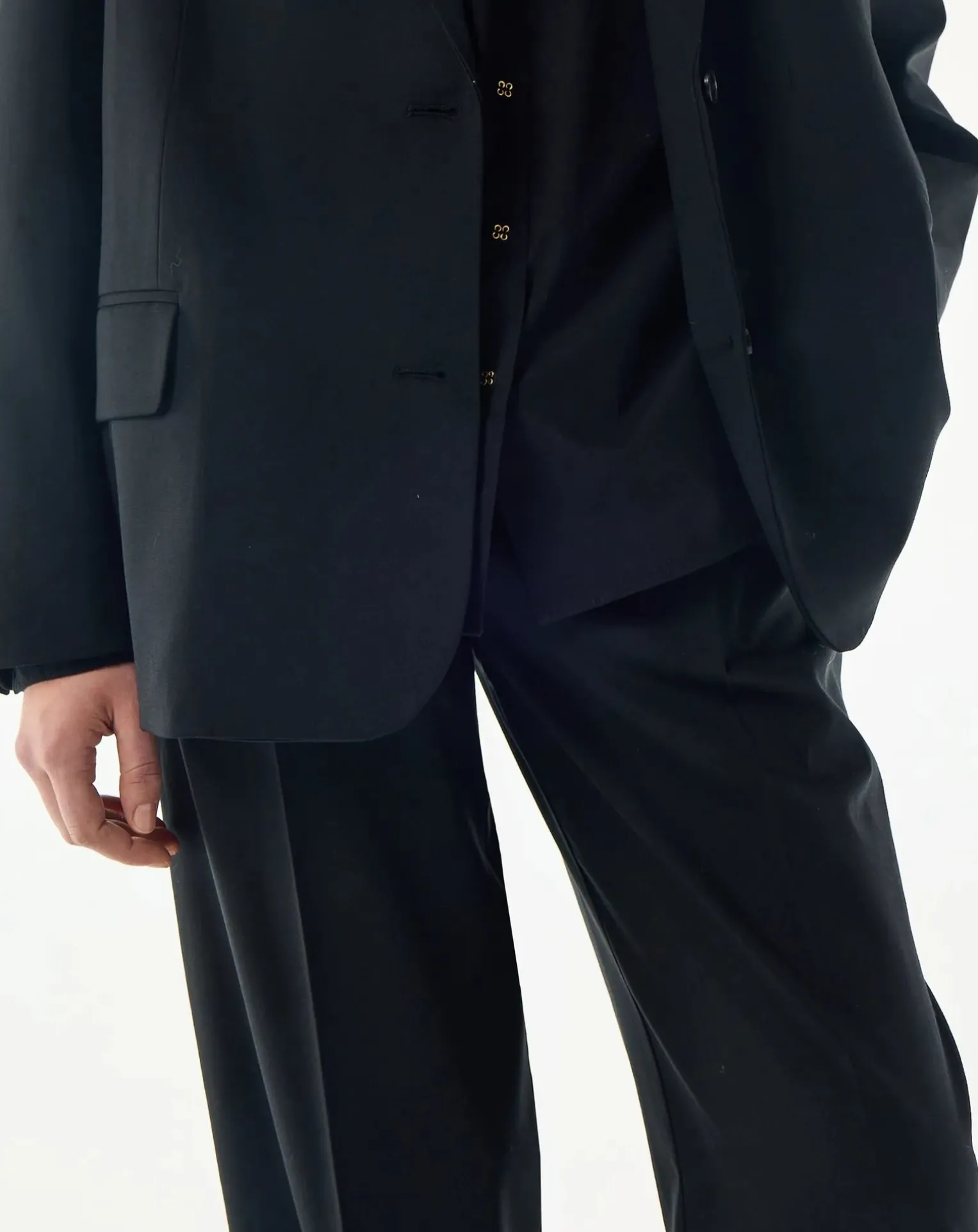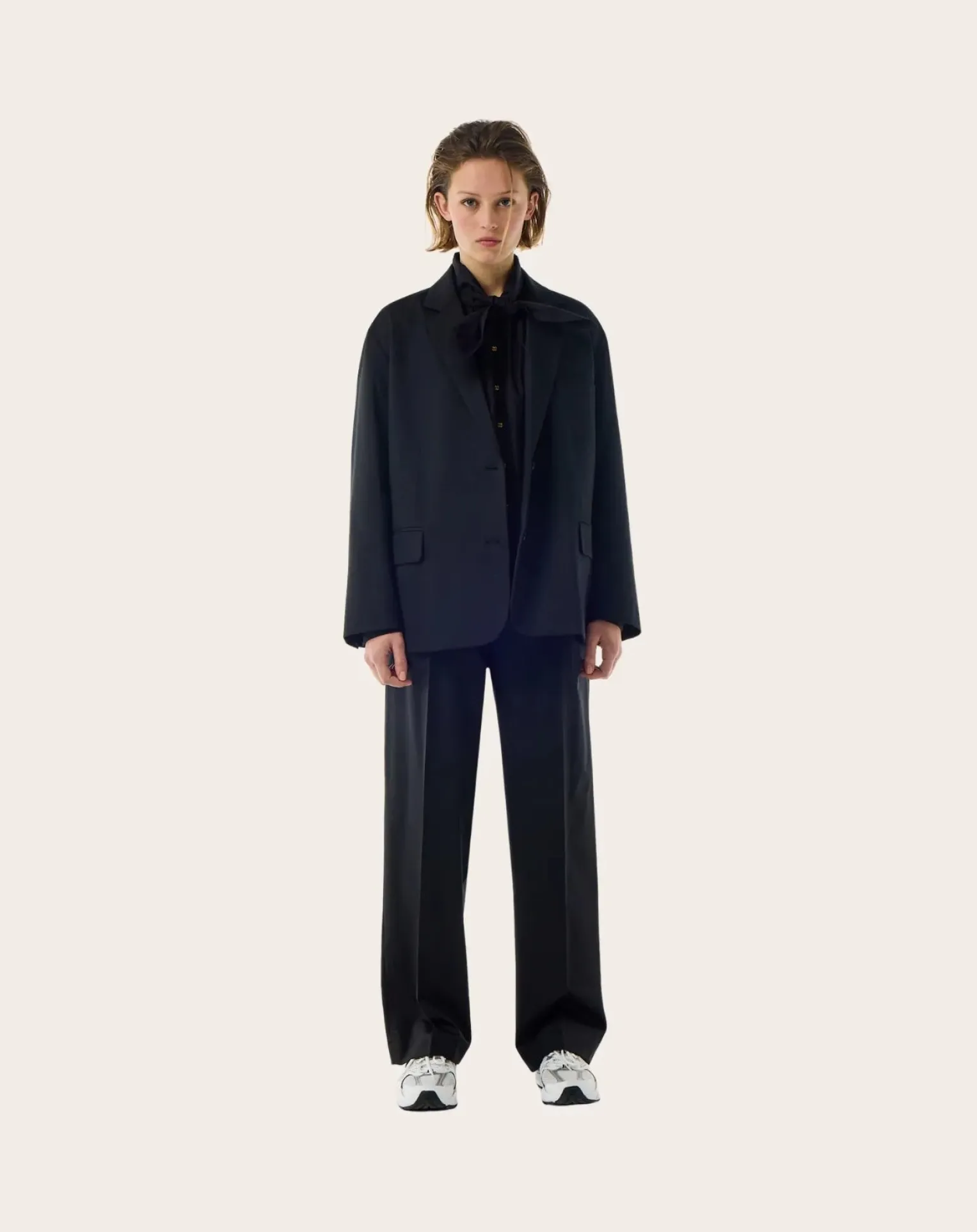 - – Pantalon droit en laine mélangée- Taille haute- Pinces devant- Pinces au dos- Poches italiennes